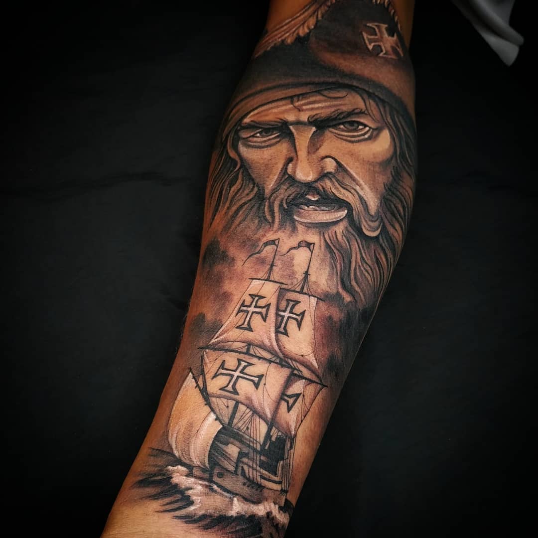 Vascaíno faz tatuagem do almirante Vasco da Gama e de caravela; veja foto