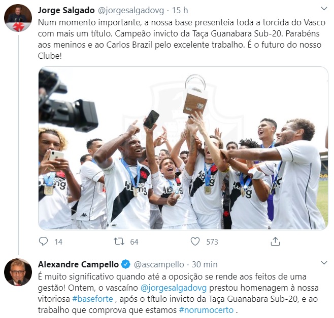 Fonte: Twitter de Jorge Salgado, Twitter do presidente do Vasco Alexandre Campello