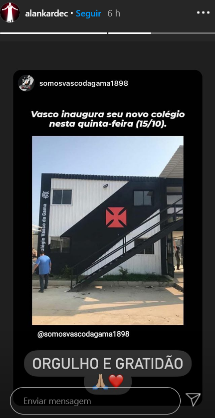 Alan Kardec publica foto do Colégio Vasco da Gama em rede social: 'Orgulho e gratidão'