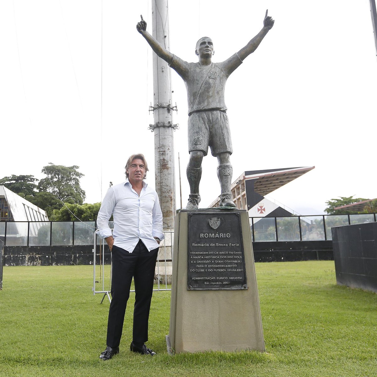 Veja foto de Ricardo Sá Pinto ao lado da estátua de Romário