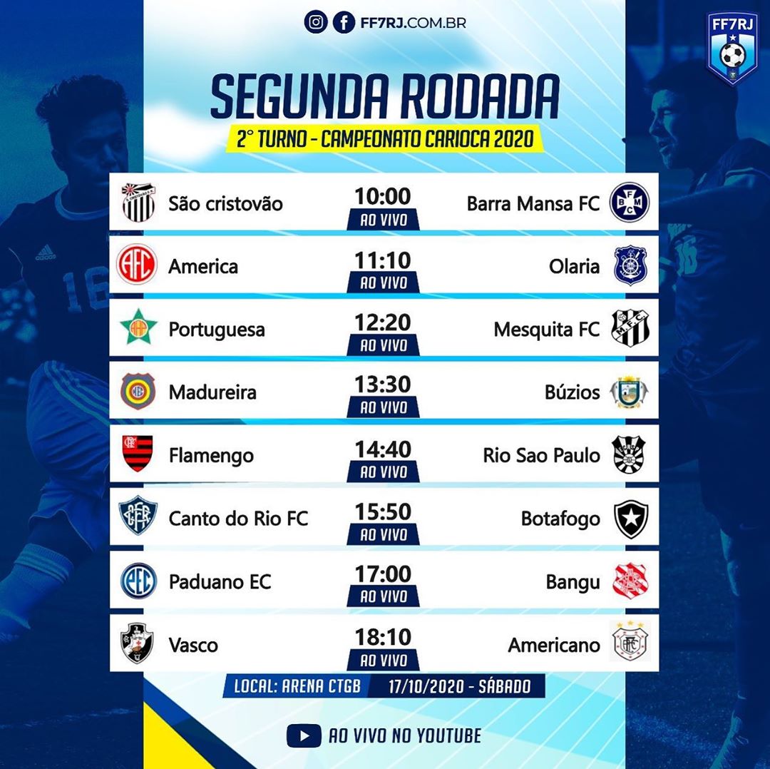 Neste sábado (17), partir das 10h na @arenactgb a bola vai voltar a rolar e oito jogos movimentarão a segunda rodada da fase de classificação do segundo turno do Campeonato Carioca de 2020.