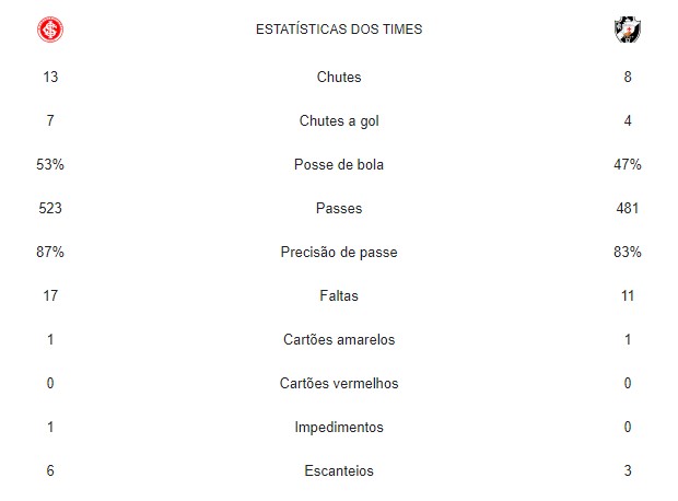 Na próxima rodada, o Vasco encara o Corinthians, nesta quarta-feira, às 21h30, em São Januário. O jogo pode marcar a estreia do técnico Ricardo Sá Pinto. Já o Internacional tem mais um carioca pela frente e faz um confronto direto no topo da tabela com o Flamengo, domingo, às 18h15, no Beira-Rio. Antes, o Colorado volta as atenções para a Libertadores: enfrenta a Universidad Católica, no Chile, na quinta-feira, às 21h30.