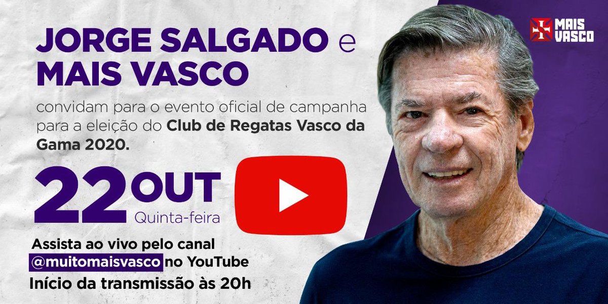 Torcida Vascaína, nessa quinta vou lançar a Declaração de Compromissos para nossa gestão e apresentar a estrutura política e administrativa que vai trazer o Vasco de volta ao seu lugar de direito. Acompanhe ao vivo, você vai se orgulhar!