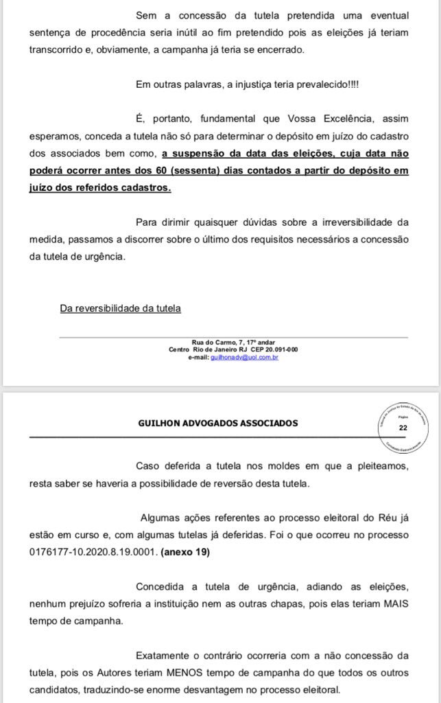 "Adiando as eleições, nenhum prejuízo sofreria a instituição nem as outras chapas, pois elas teriam mais tempo de campanha".
