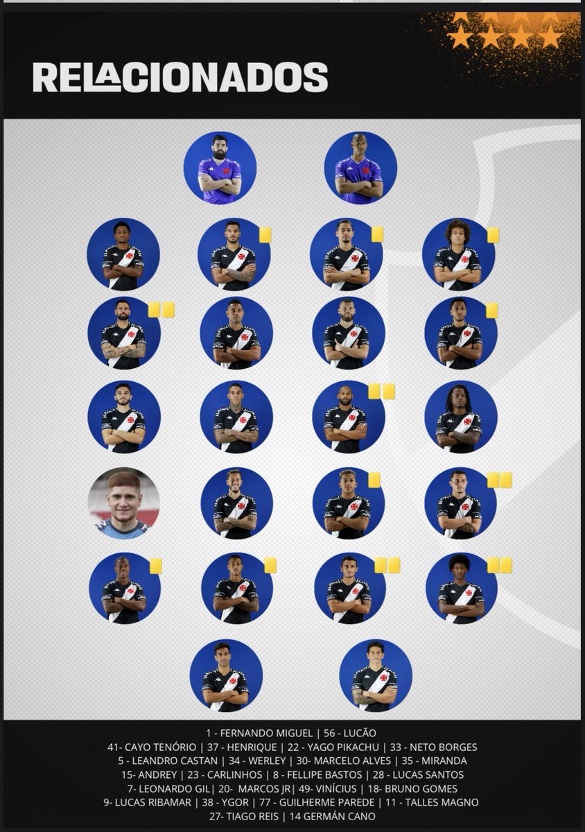 Vasco divulga oficialmente os relacionados para a partida de logo mais!