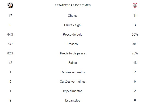Cartões Amarelos: Leandro Castan (VAS), Éderson (COR), Ricardo Sá Pinto (VAS)