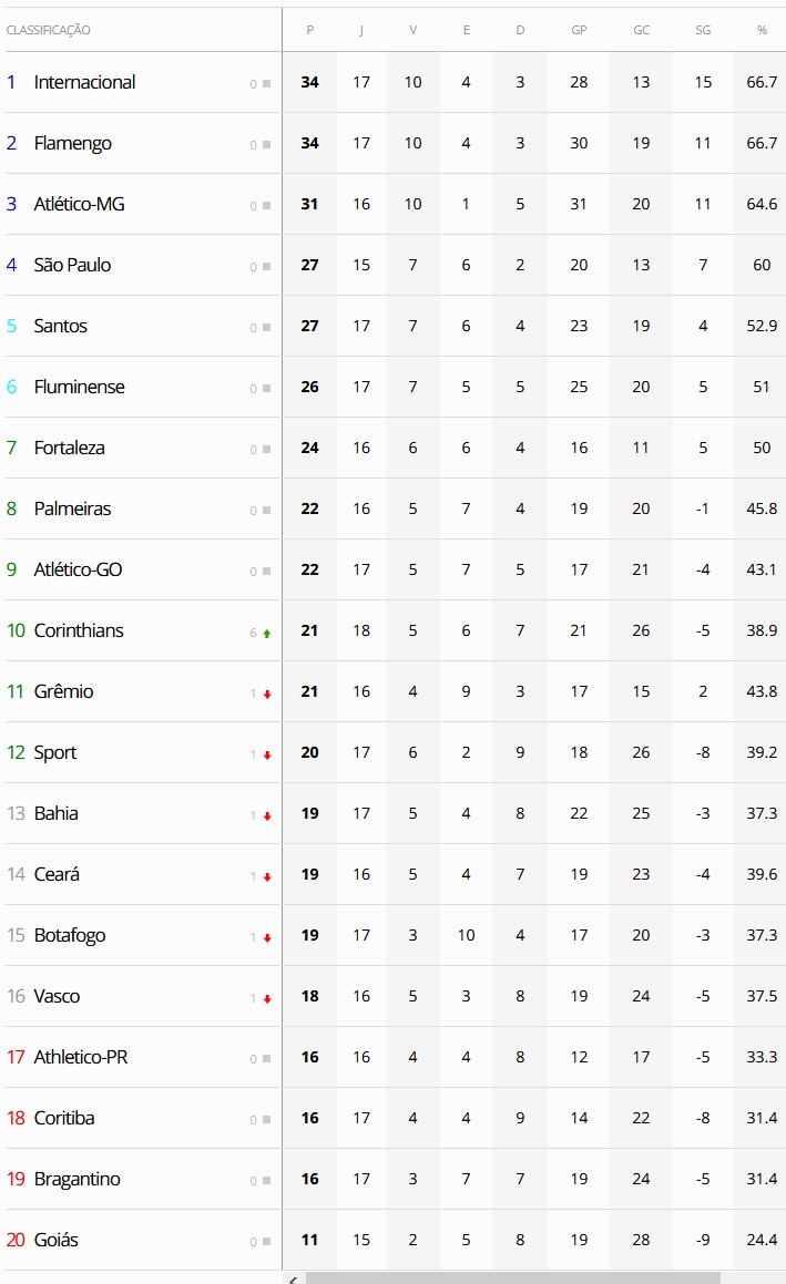 Com menos jogos do que a maioria de seus adversários, o Vasco, derrotado pelo Corinthians na abertura da 18ª rodada do Campeonato Brasileiro, caiu da 15ª para a 16ª colocação.