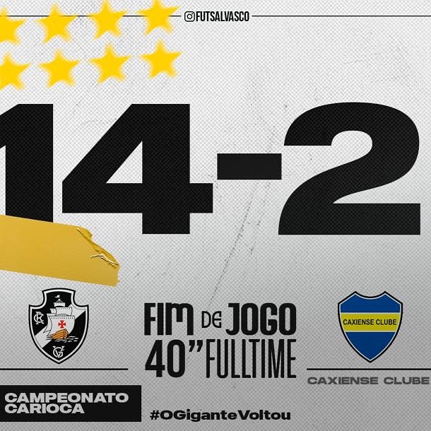 Futsal: Vasco goleia o Caxiense por 14 a 2 pelo Carioca