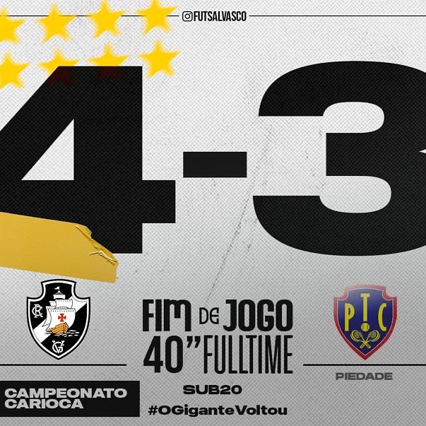 Futsal Base: Vasco vence o Piedade por 4 a 3 pelo Carioca Sub-20