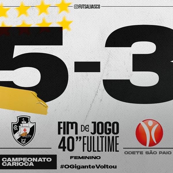 Futsal Feminino: Vasco vence o Odete São Paio por 5 a 3 em sua estreia no Carioca