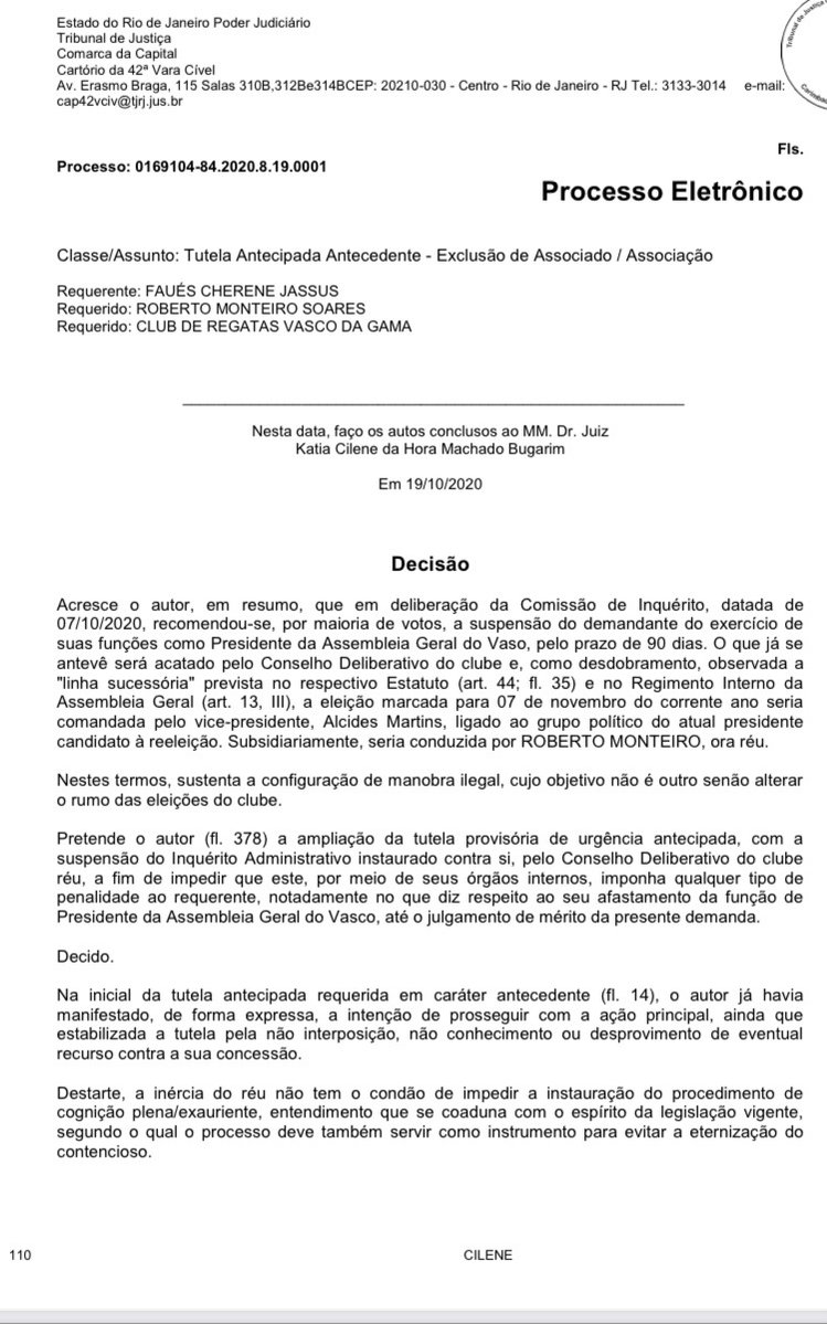 Mussa consegue Liminar na justiça comum para não ser punido amanhã pelo CD @VascodaGama página 1. #TUPI