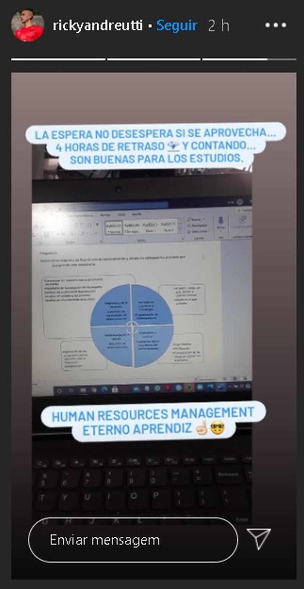 Experiente volante do Caracas, Ricardo Andreutti publicou nas redes sociais um registro das primeiras horas do atraso. Ele respondeu questionamentos do ge e fez questão de ressaltar que o problema é recorrente no país, que sofre grave crise financeira e política há alguns anos.
