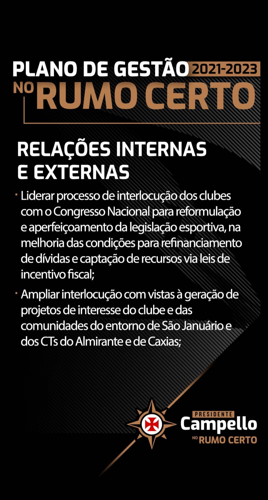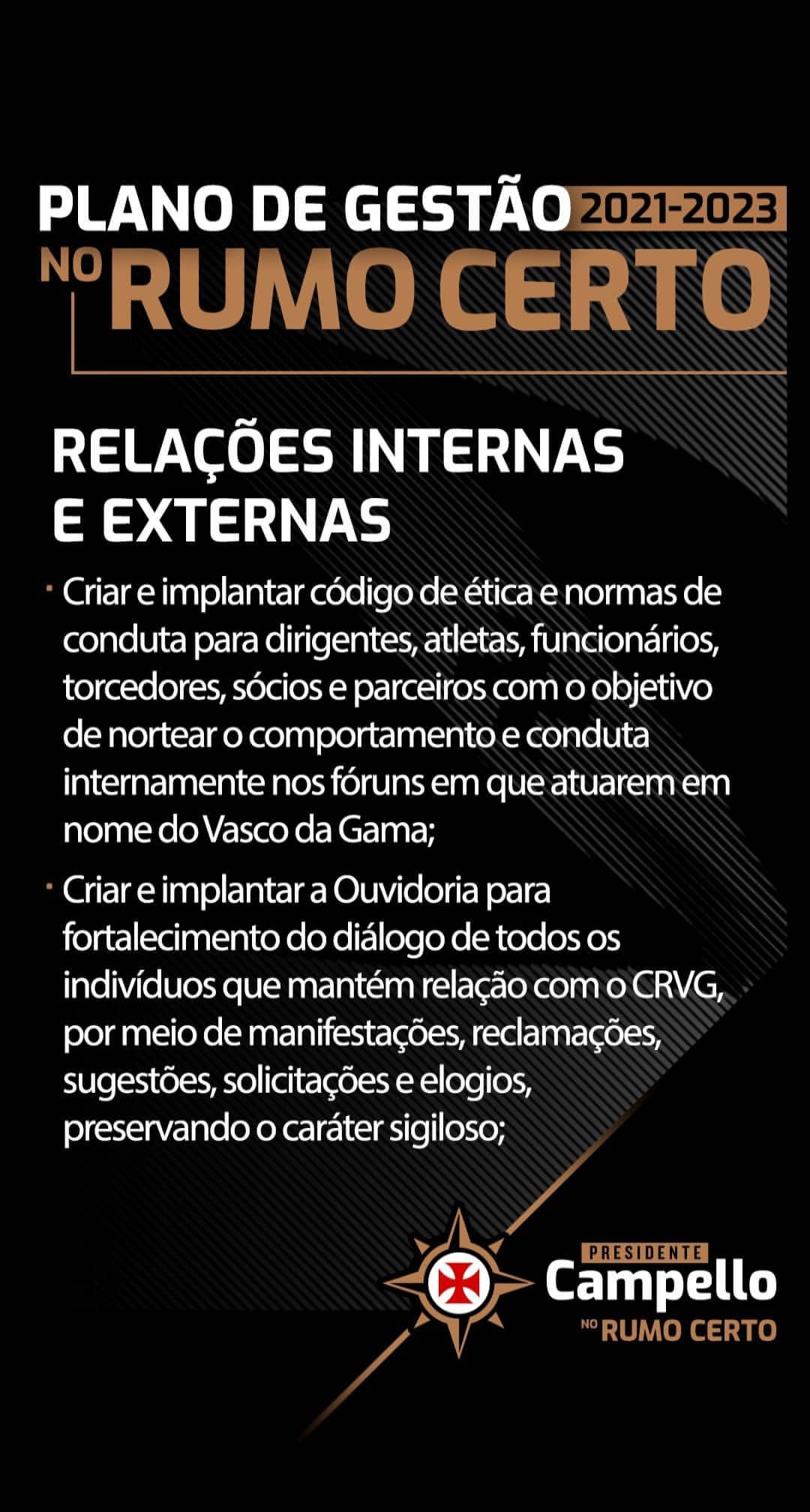 25/10/20 - Chapa No Rumo Certo, de Campello, destaca 4ª colocação do Vasco em ranking de transparência nas finanças