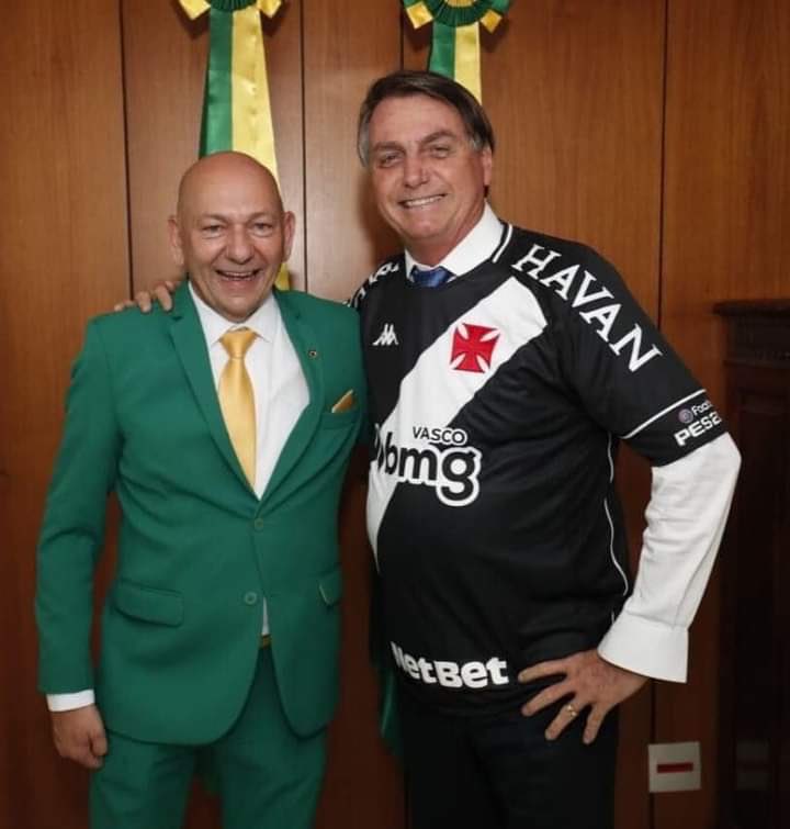 Luciano Hang, dono da @havanoficial, presenteou o Presidente da República @jairbolsonaro com uma camisa do C.R Vasco da Gama. #gevas