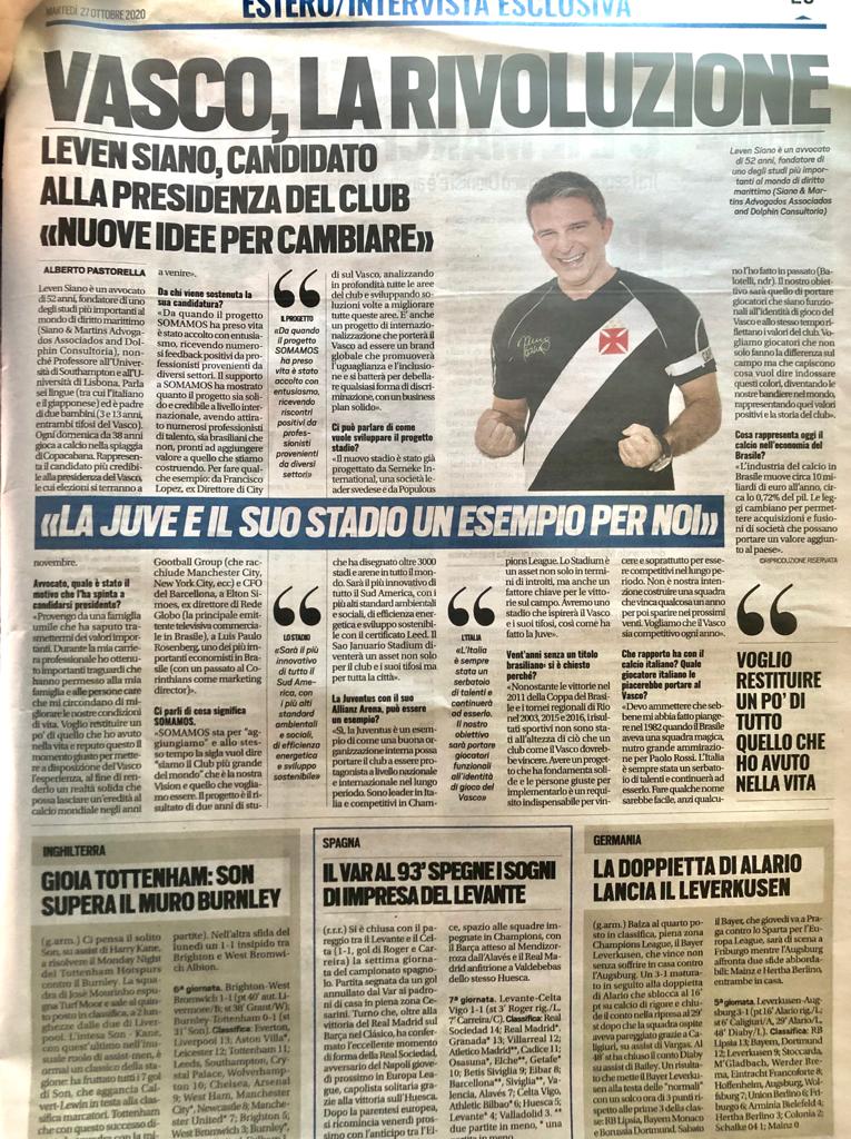 Depois da BBC de Londres, desta vez concedi entrevista para o jornal esprotivo TuttoSport, o mais importante de Turim, na Itália.