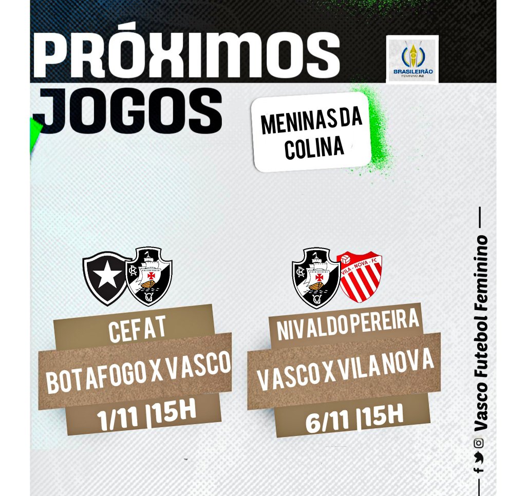 Feminino: Vasco enfrenta o Botafogo no dia 01/11 e o Vila Nova no dia 06/11