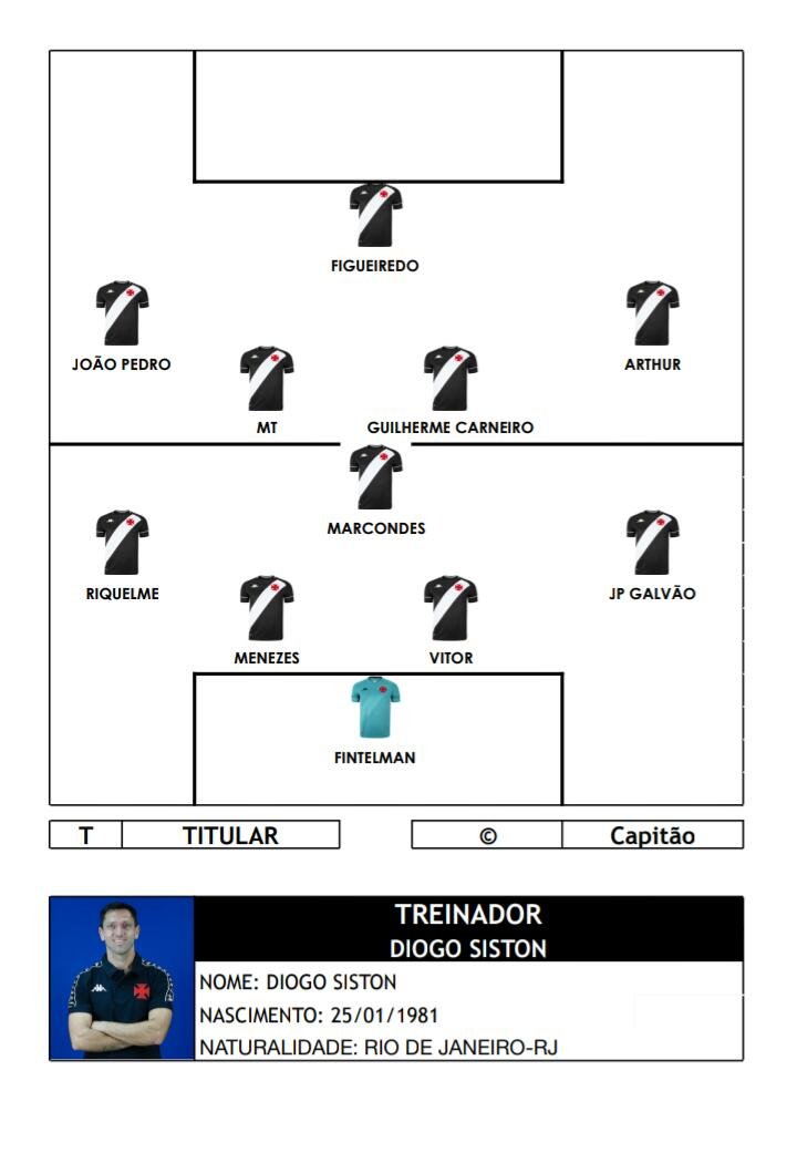 Vasco escalado pelo técnico Diogo Siston para enfrentar o Moto Club, no Estádio Nivaldo Pereira, pelo jogo de volta da segunda fase da Copa do Brasil Sub-20. Na ida, jogando no Maranhão, empate em 2 a 2 no Castelão.