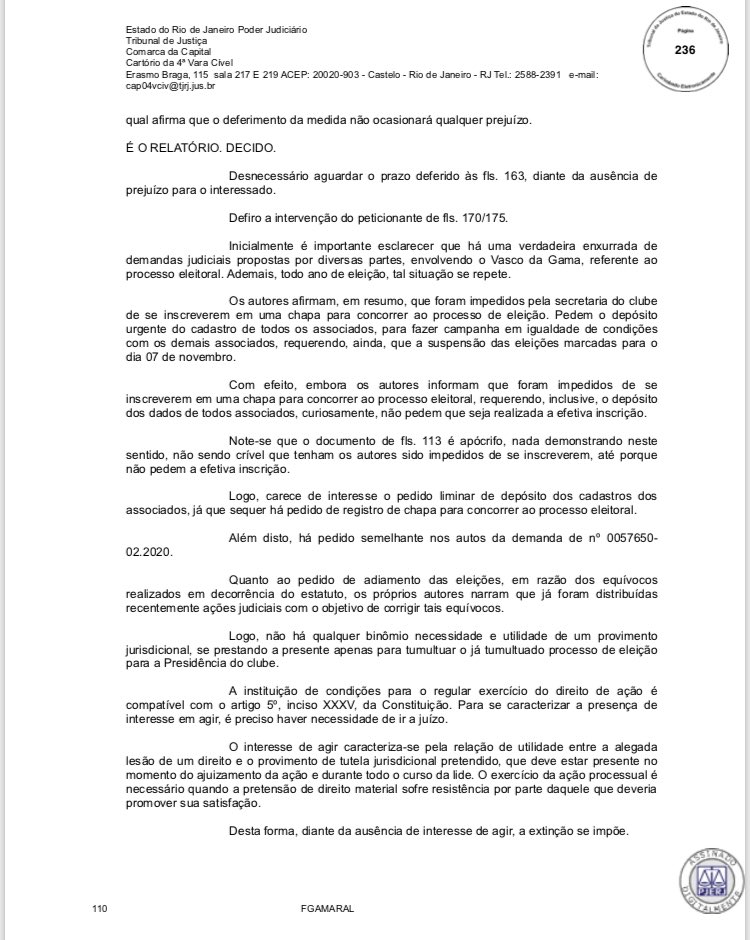 "Não há qualquer binômio necessidade e utilidade de um provimento jurisdicional, se prestando a presente apenas para tumultuar o já tumultuado processo de eleição", assinalou.