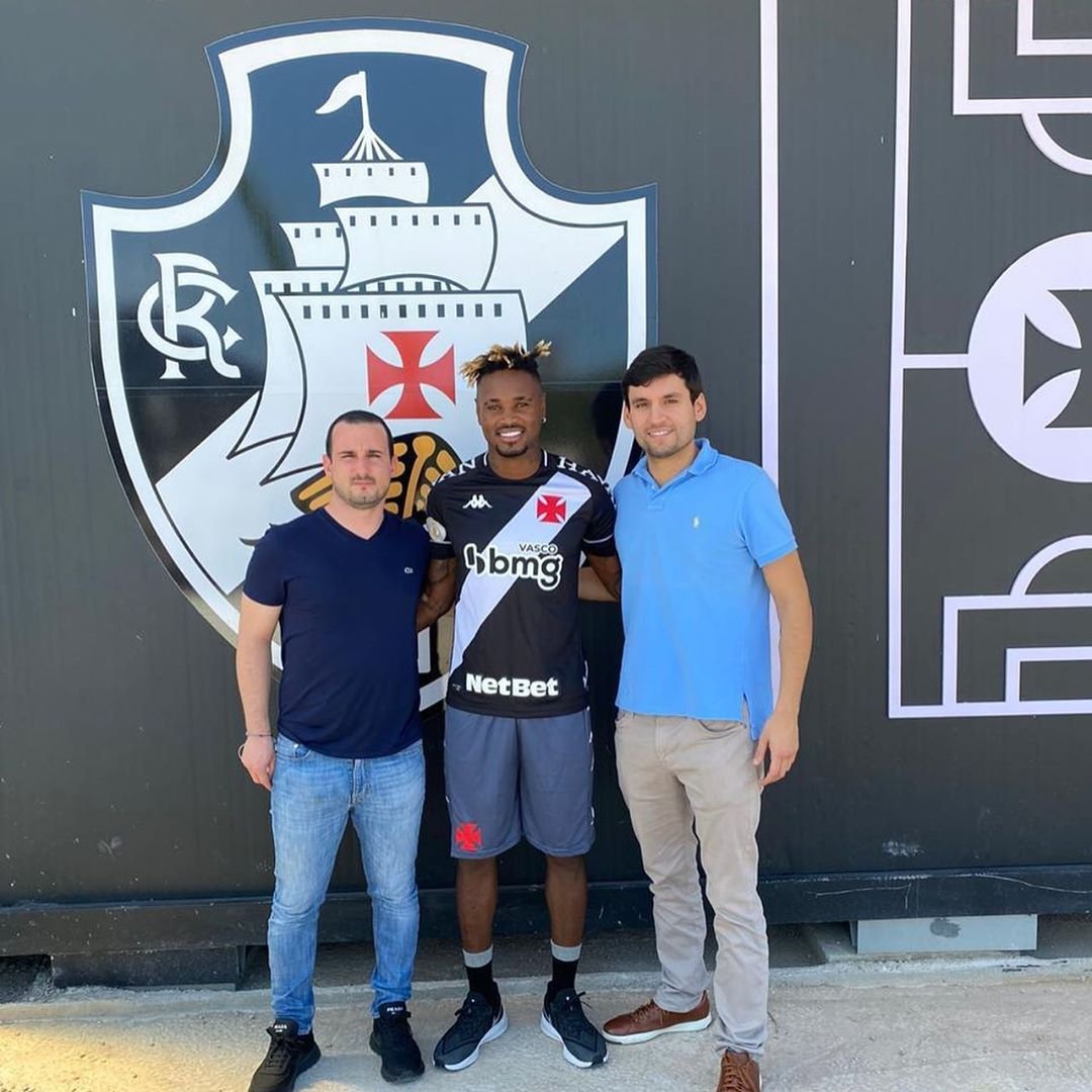Olha aí o Gustavo Torres, novo reforço do clube, vestindo a camisa do Vasco ao lado dos seus representantes no CT do Almirante em Jacarepaguá. Bem-vindo! ????