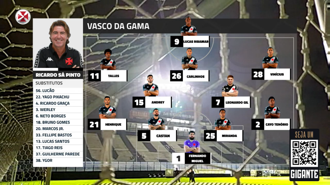 VascoTV apresenta disposição tática do time titular desta 4ª-feira; confira