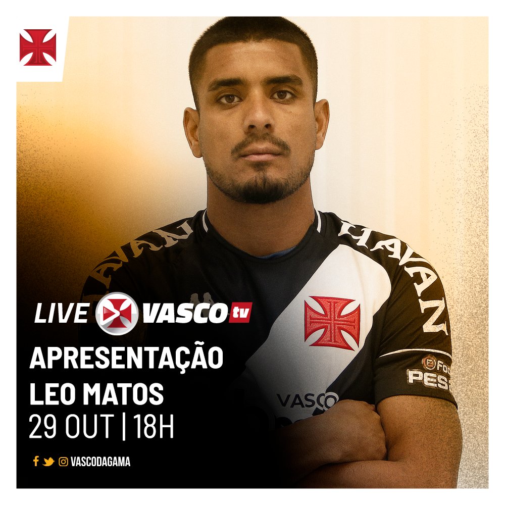 VascoTV anuncia live de apresentação de Léo Matos para esta 5ª-feira às 18h