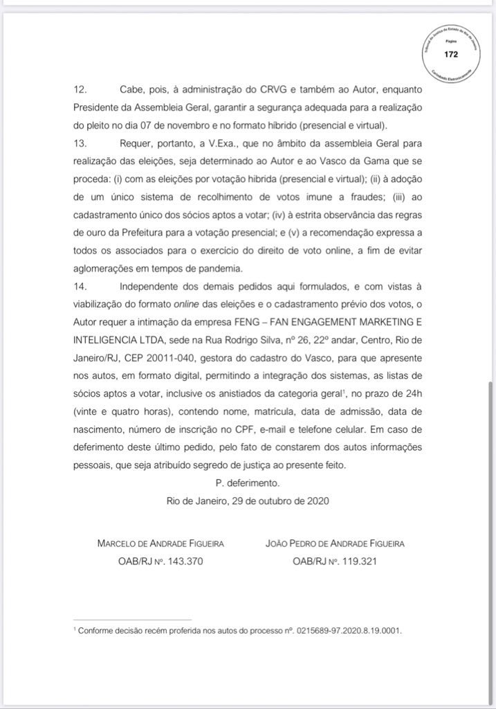 Candidato Jorge Salgado, da chapa "Mais Vasco", ingressou com uma ação solicitando que a eleição presidencial ocorra de maneira híbrida, ou seja, com o sócio podendo escolher entre votar presencialmente ou online