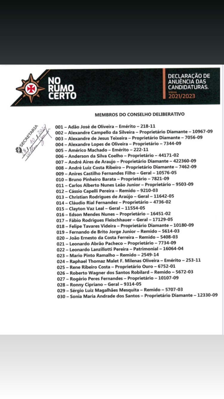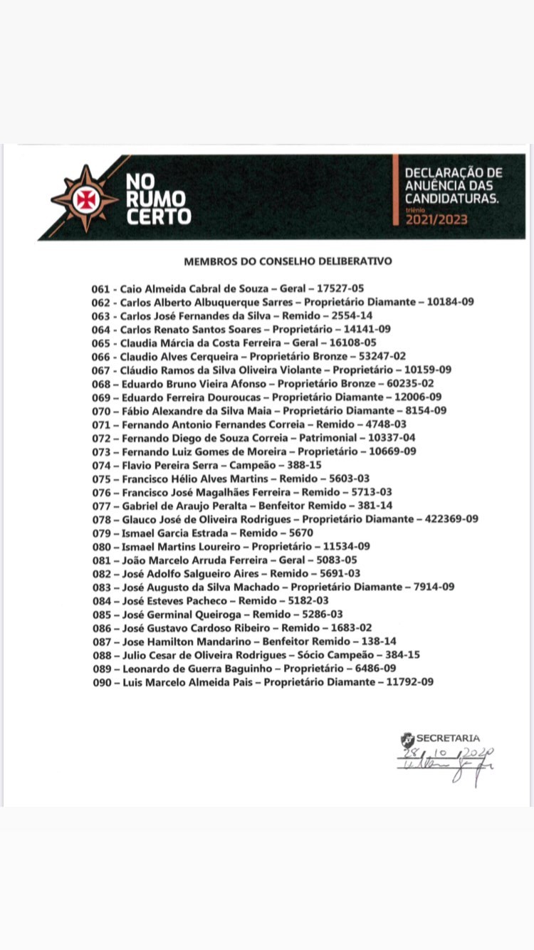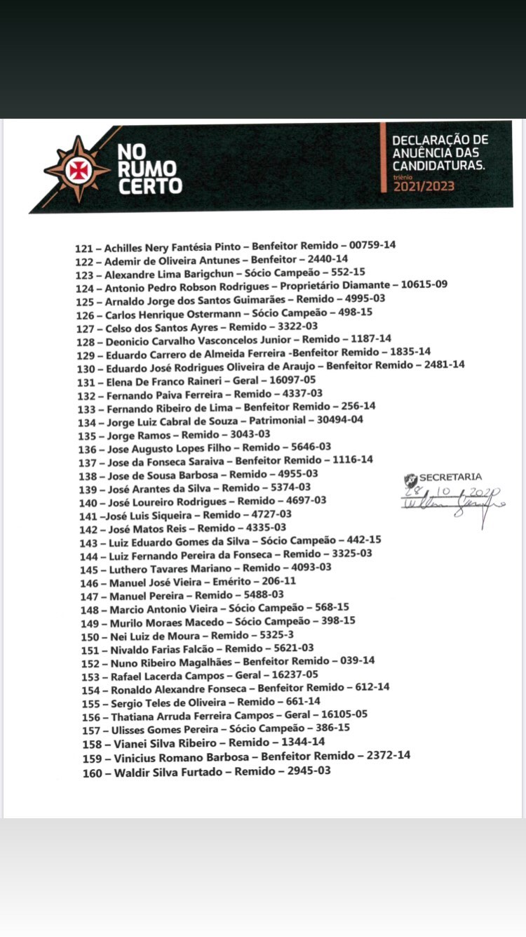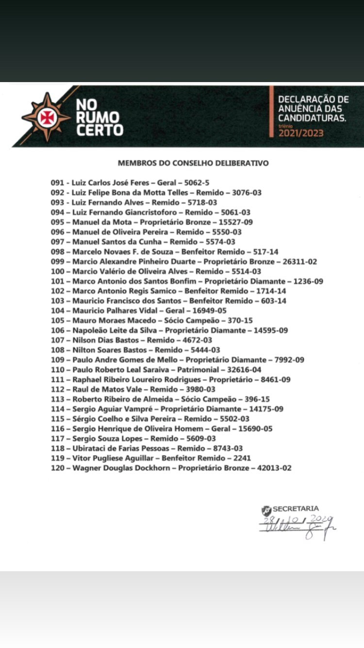 30/10/20 - Chapa Somamos, de Leven Siano, divulga seus 160 indicados para o Conselho Deliberativo