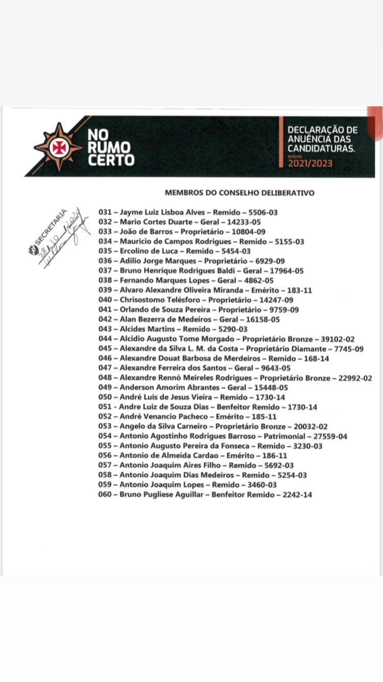 Chapa No Rumo Certo, de Campello, divulga os nomes de seus 160 indicados ao Conselho Deliberativo