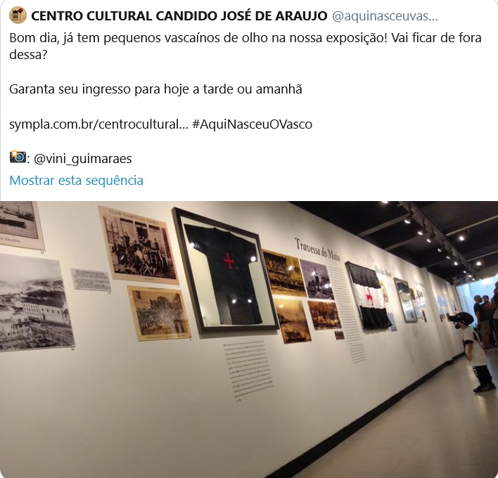 Essa inauguração simboliza a essência de nosso clube. Vascaínos se uniram para recuperar a primeira sede do nosso Clube, revivendo os mais lindos momentos da nossa história. Merecem todo o reconhecimento e gratidão! E hoje à noite todos juntos pela vitória!