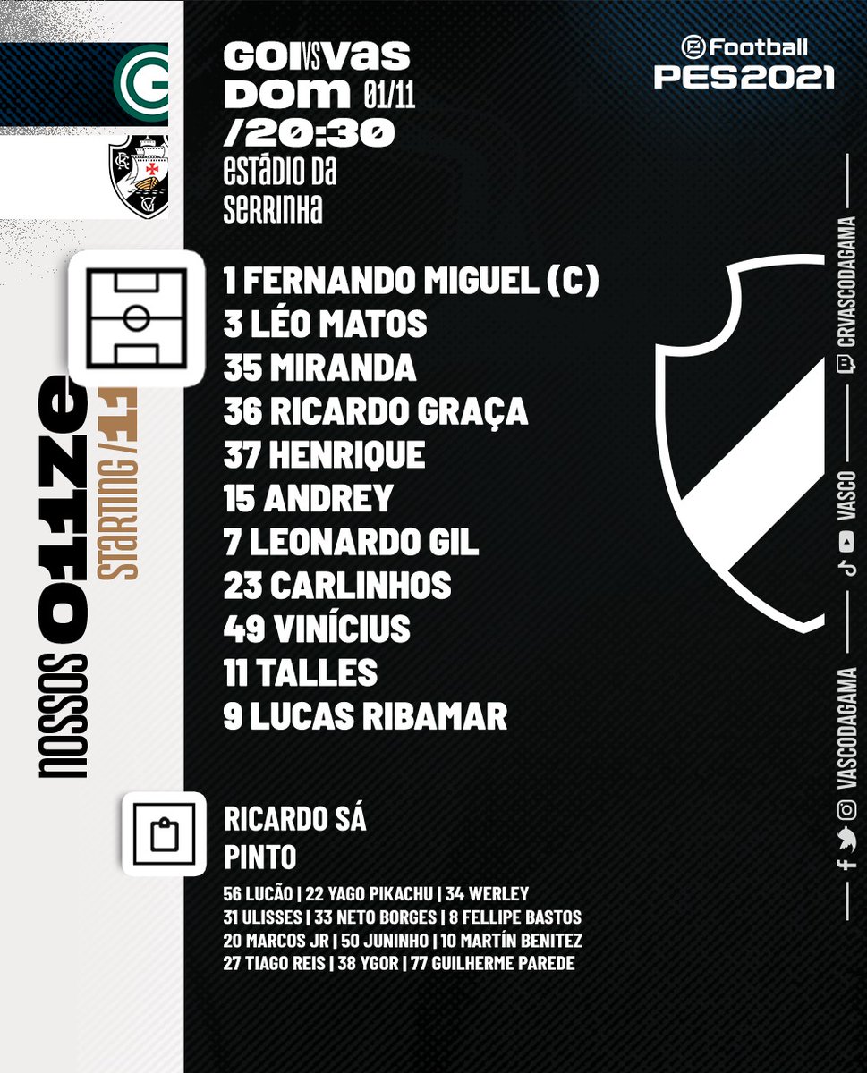 Confira a escalação do Vasco; Léo Matos estreia, Ricardo Graça é titular e Benítez e Tiago Reis são opções no banco