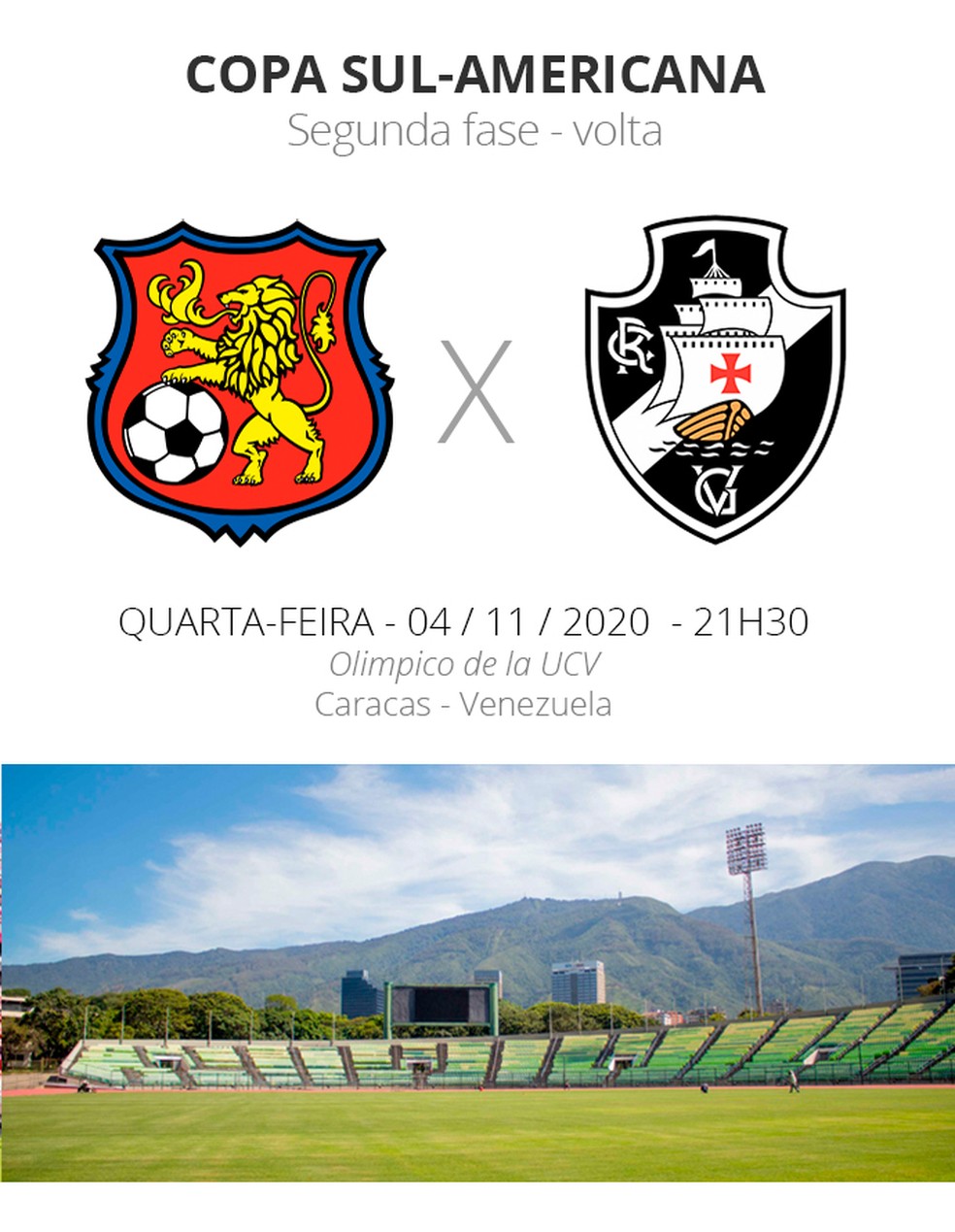 O Vasco entra em campo com vantagem. No jogo de ida, na semana passada, em São Januário, o time brasileiro venceu por 1 a 0, com gol de Tiago Reis. Com isso, a equipe de Sá Pinto avança com um empate ou até mesmo uma derrota por um gol de diferença, desde que marque ao menos um gol em Caracas.