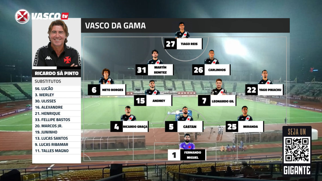 01/11/20 - VascoTV apresenta disposição tática do time titular deste domingo; confira