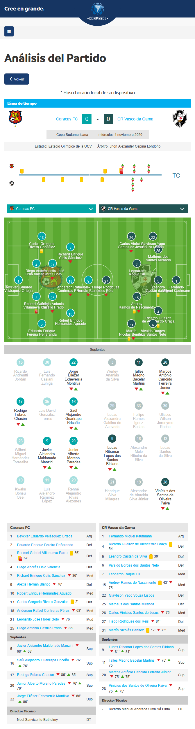 Confira o relatório da Conmebol de Caracas 0 x 0 Vasco