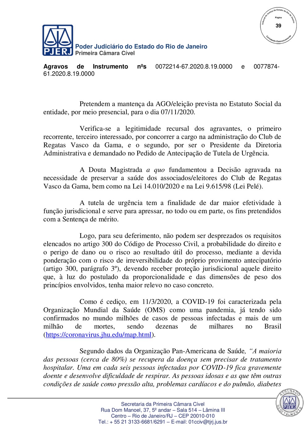 Leia parte da decisão que determina a realização de eleições presenciais no clube (veja ela na íntegra nas imagens colocadas no fim da matéria):