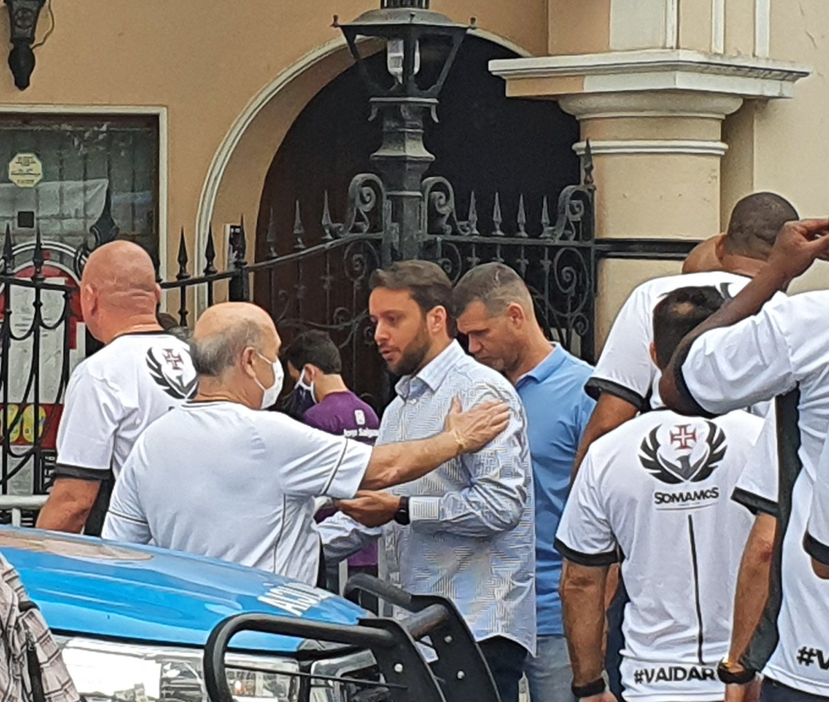 08:29 - Leven Siano chega a São Januário acompanhado por seguranças