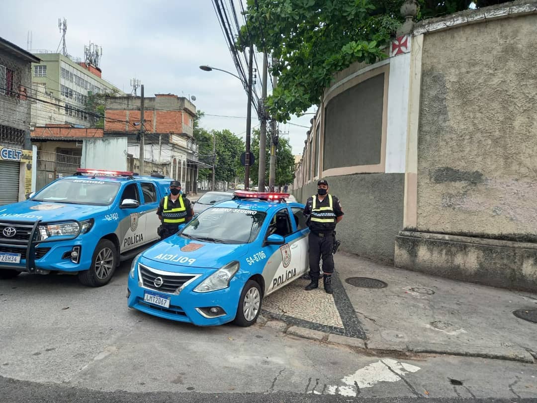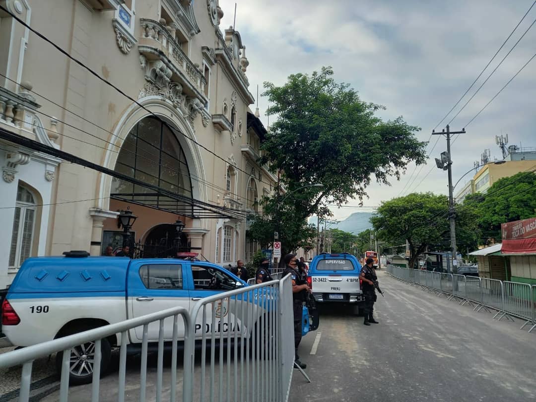 Policiamento presente em São Januário para garantir a segurança de candidatos e sócios durante as eleições presidenciais do Vasco. #4BPM @PMERJ