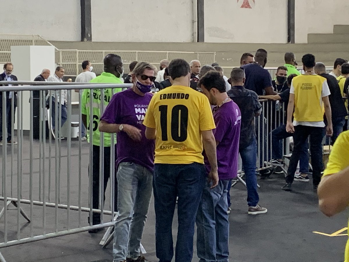Jorge Salgado chega ao ginásio de São Januário e conversa com Julio Brant