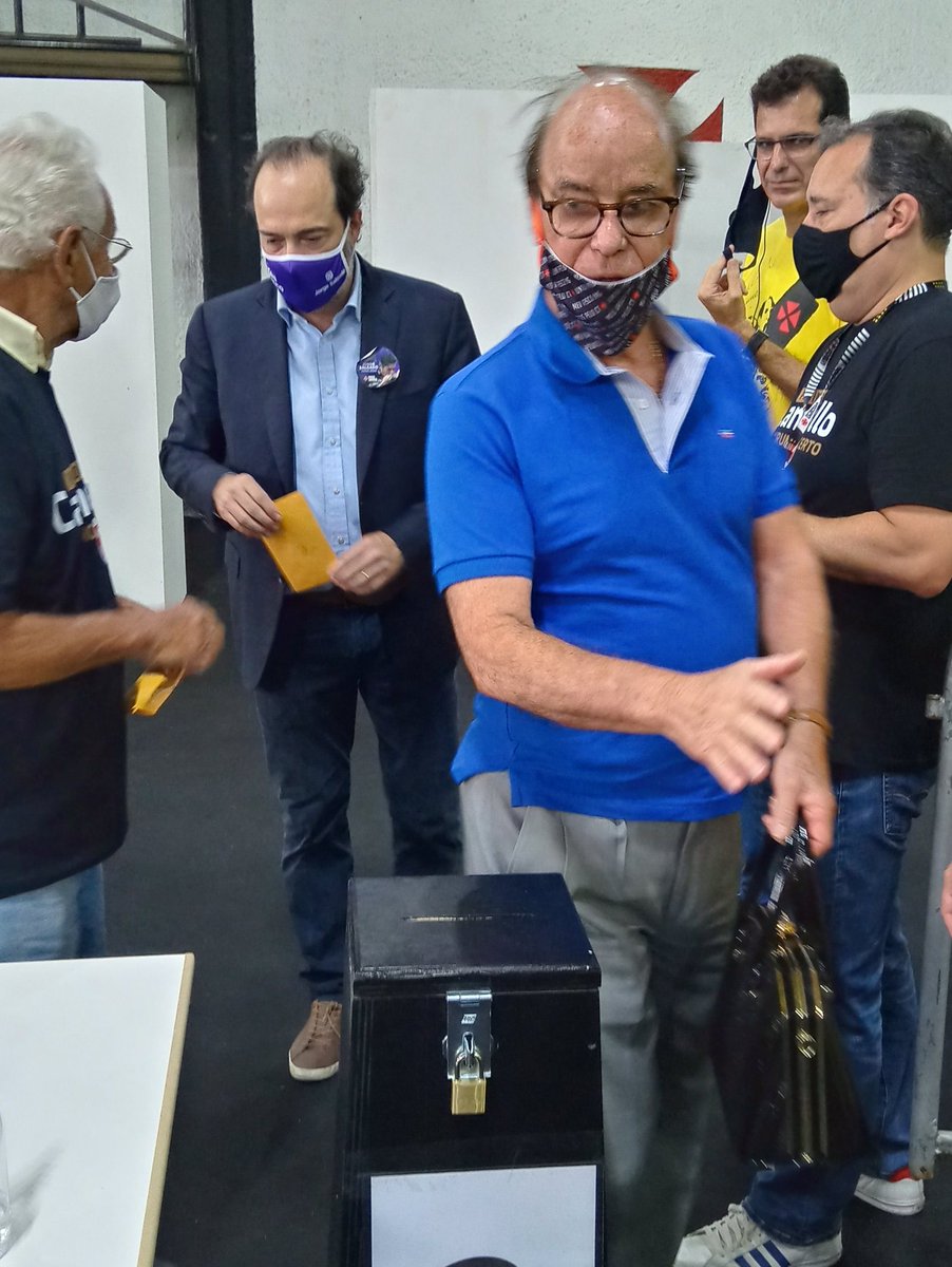 Multicampeão pelo Vasco, Antônio Lopes acaba de votar. Veio acompanhado da esposa Dona Elza. Ele trabalhou como coordenador técnico do Vasco até setembro #gevas