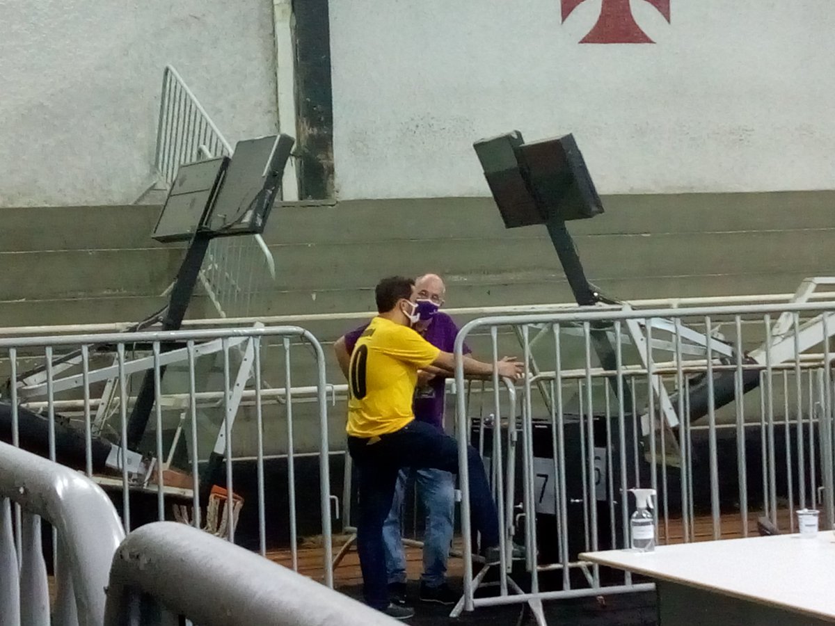 Julio Brant e Otto Carvalho, apoiador de Jorge Salgado, conversaram no ginásio de São Januário
