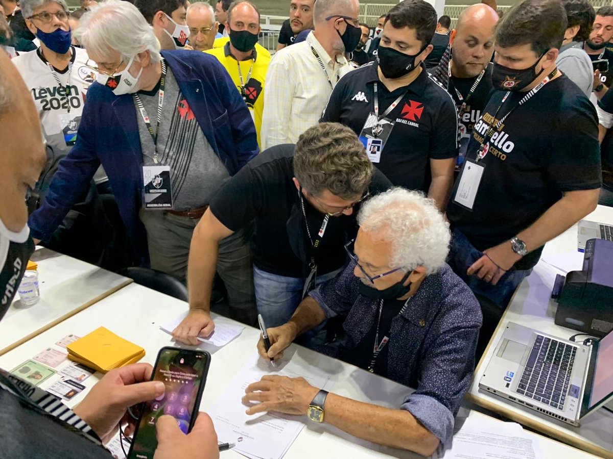 Oficial de justiça chegou em São Januário. Mussa assina a intimação. Eleições oficialmente suspensas.