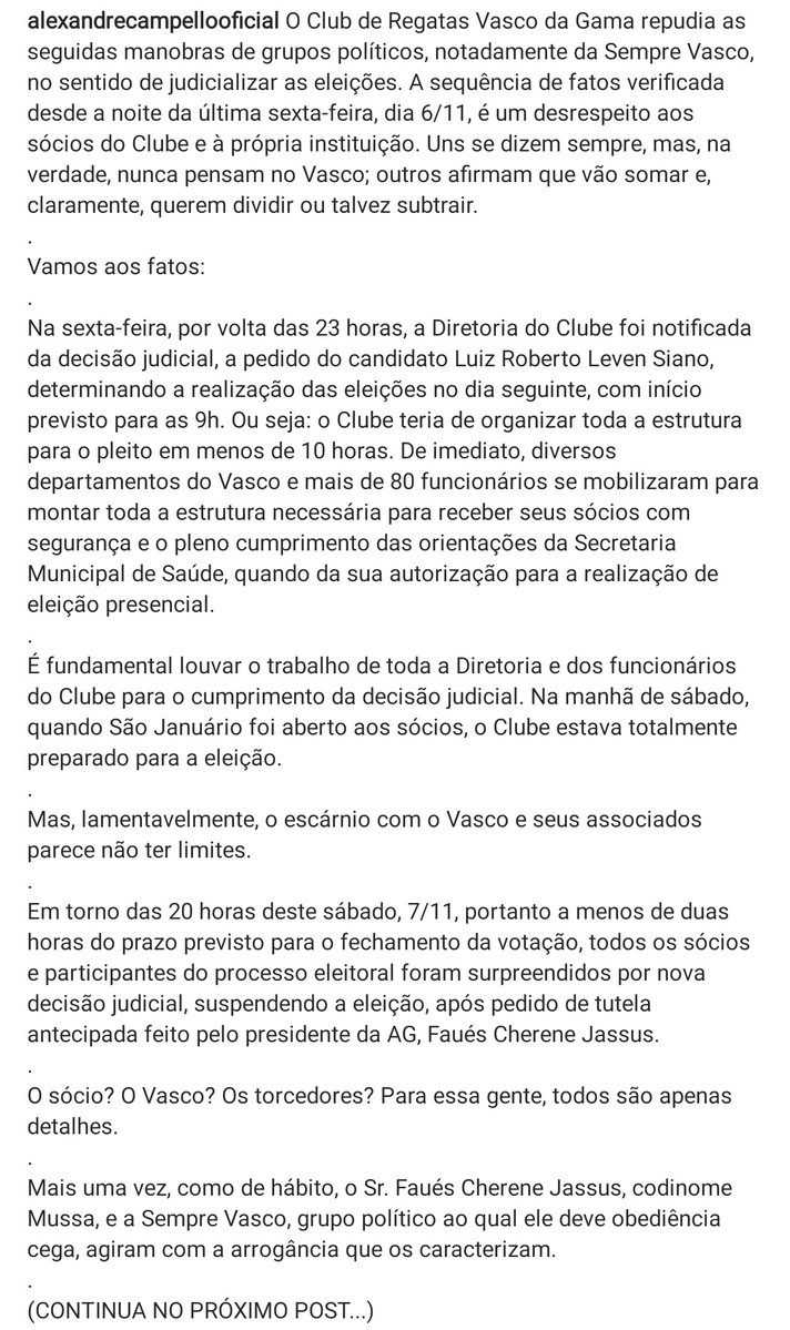 07/11/20 - Eleição deve continuar até que o clube seja notificado da decisão de ministro do STJ
