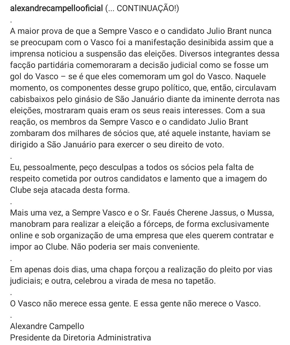07/11/20 - Julio Brant fala sobre eleição deste sábado: 'Mais um capítulo lamentável na história do Vasco'