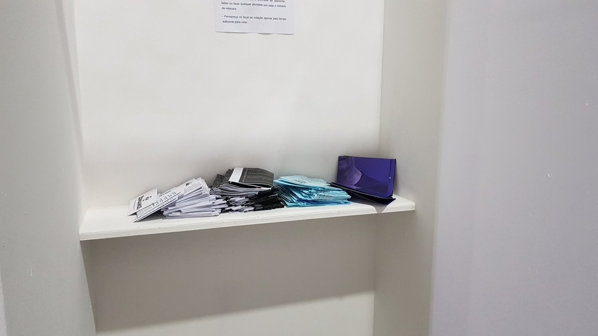 Votação continua. Estão presentes aqui os candidatos Campello, Leven, Salgado e Frias. Brant, ao afirmar ser favorável ao cumprimento de decisão judicial, foi embora. Não há cédulas dele nas cabines de votação. #gevas