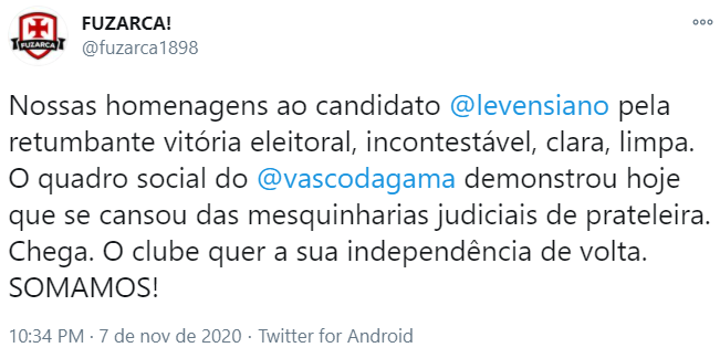 Fonte: Twitter Fuzarca