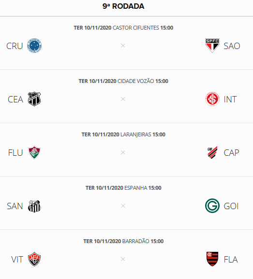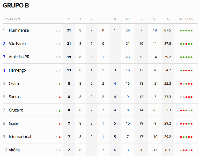 Veja abaixo a classificação e os jogos da 9ª rodada da 1ª fase da competição.