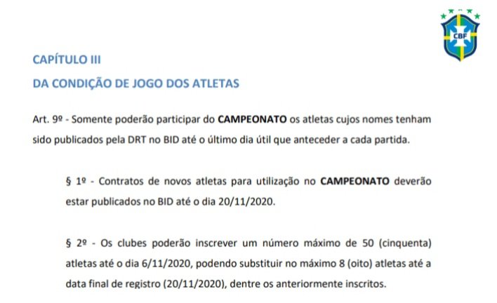 Muitos me perguntando como fica a situação de novos atletas com o fechamento da janela. O Vasco tem até o dia 20/11 para inscrevê-los no Brasileirão e fazer as substituições na lista. Agora, só jogadores livres ou da série A (que não fizeram 7 jogos) e de divisões inferiores.
