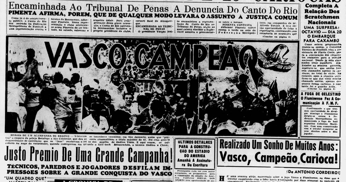 No dia 11/11/1945, portanto há 75 anos, o Vasco goleou o Madureira por 4 a 0 (gols de Ademir 2, Chico e Isaías) e se sagrou campeão carioca, pondo fim a um jejum que já durava nove anos. Era o primeiro Campeonato Carioca conquistado pelo Expresso da Vitória. Na rodada seguinte, o empate por 2 a 2 contra o Flamengo garantiu ao Vasco o título invicto. No mesmo ano, a conquista do Campeonato Carioca de Remo valeu ao Gigante da Colina o apelido de "Campeão de Terra e Mar" e a primeira estrela dourada em sua bandeira.