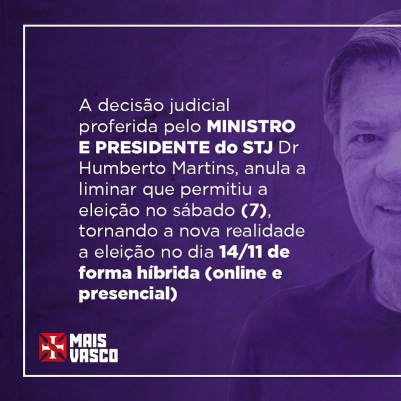 A decisão judicial proferida pelo MINISTRO E PRESIDENTE do STJ, Dr Humberto Martins, anula a liminar que permitiu a eleição no sábado (7), tornando a nova realidade a eleição no dia 14/11 de forma híbrida (online e presencial).