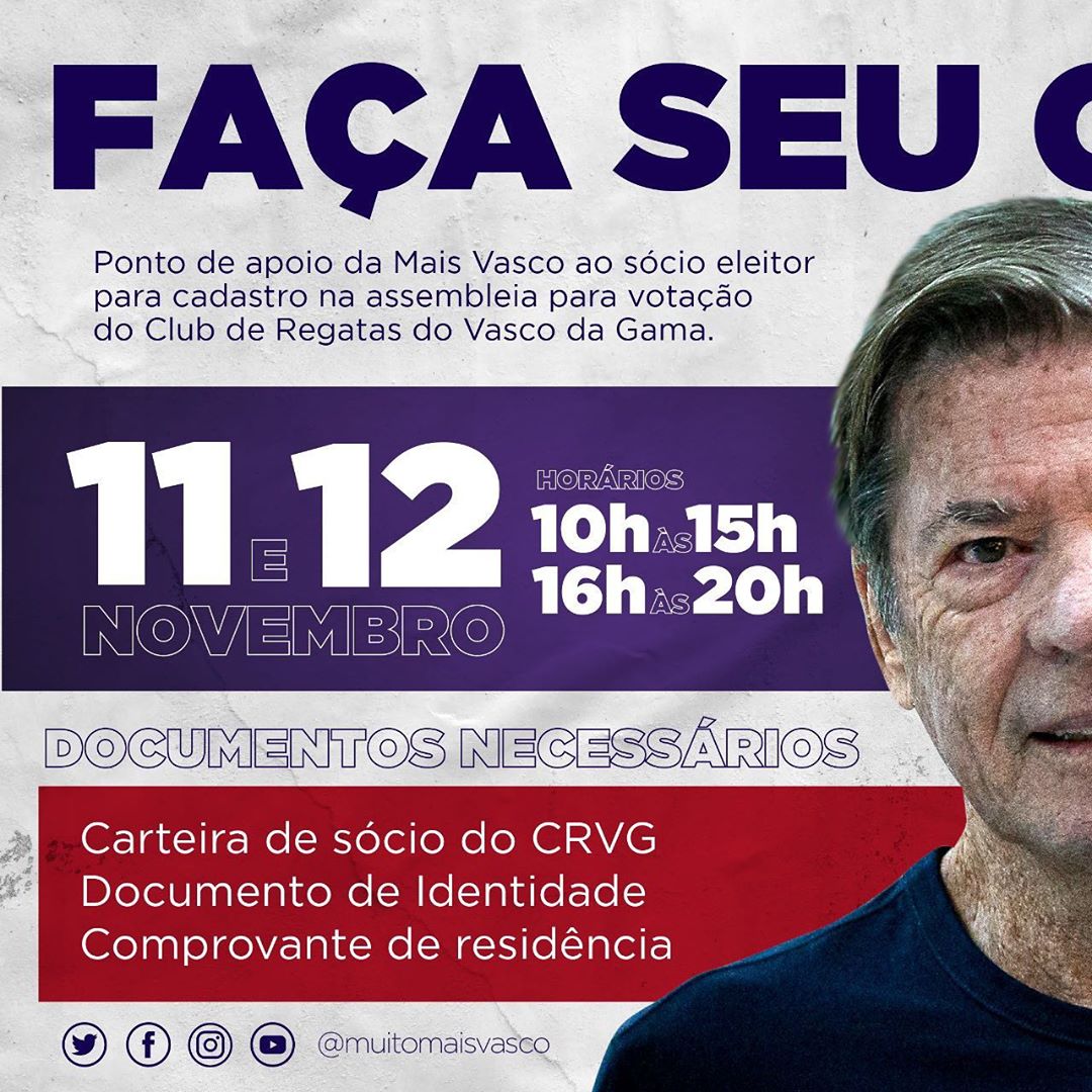 É importantíssimo o seu cadastro o quanto antes para participar da eleição! Está com dúvidas? A Mais Vasco tem promotores para te ajudar nos bairros de Botafogo, Barra da Tijuca e Tijuca!