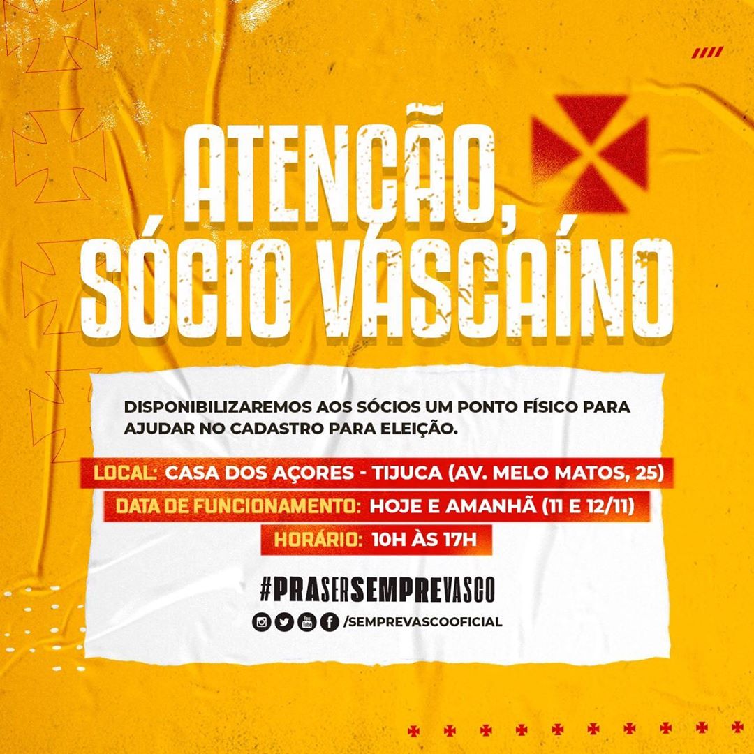 Dia 14/11 acontecerão as eleições do Club de Regatas Vasco da Gama. O pleito será de forma híbrida (on-line e presencial) e para conseguir votar será preciso realizar um cadastro prévio a fim de garantir a lisura do processo.